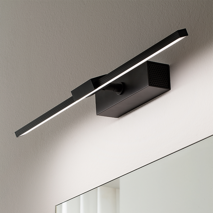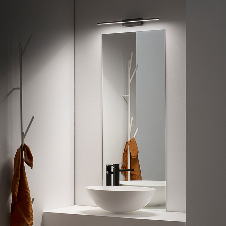 The minimalist style of this lamp blends harmoniously into any interior, giving a soft and pleasant light. Characterized by an aluminum structure, Dovevuoi 100/ap is composed of a rectangular rosette, at the center of which originates a short cylindrical joint, which allows the wide diffuser a rotation up to a maximum of 90°. This feature allows the light source to project a soft beam of light that is ideal in any type of environment. Placed in a living room, hallway or professional studio, Dovevuoi 100/ap creates a unique and striking atmosphere in spaces.
