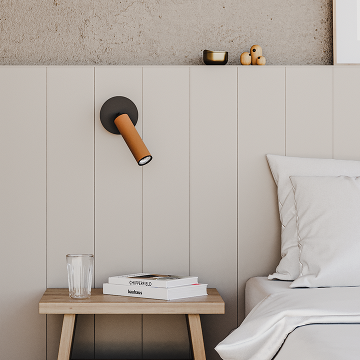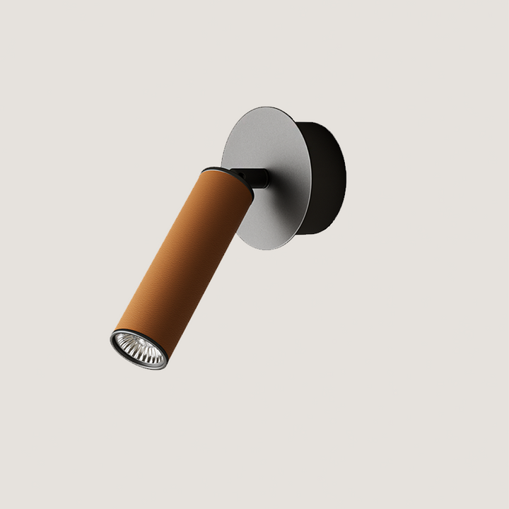 The Tura Wall Light is part of a collection that comprises of lighting fixtures that exhibit bold and striking simplicity. The slim metal cylinder of the Tura Wall Light is ensconced in a black, brown, or orange leather sleeve, featuring visible stitching that adds a tantalising texture and softness. This minimalistic wall light has an adjustable arm that offers an additional layer of functionality, making it a versatile fixture.